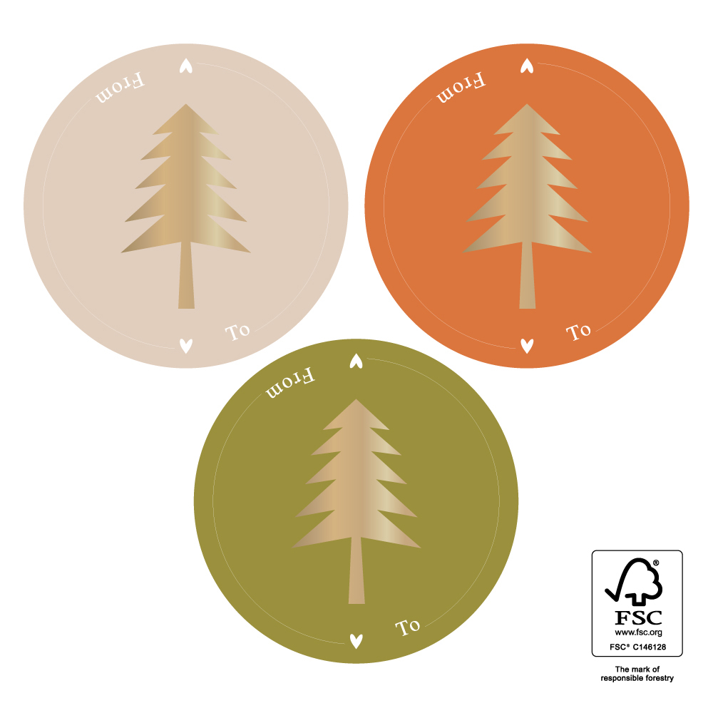 Kerst naamstickers groen-zand-oranje met kerstboom (HOP)
