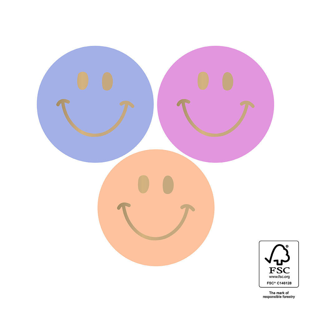 Schattige smileys met goudfolie gezichtjes. Je ontvangt 10 stickers. ø 3,5cm.
