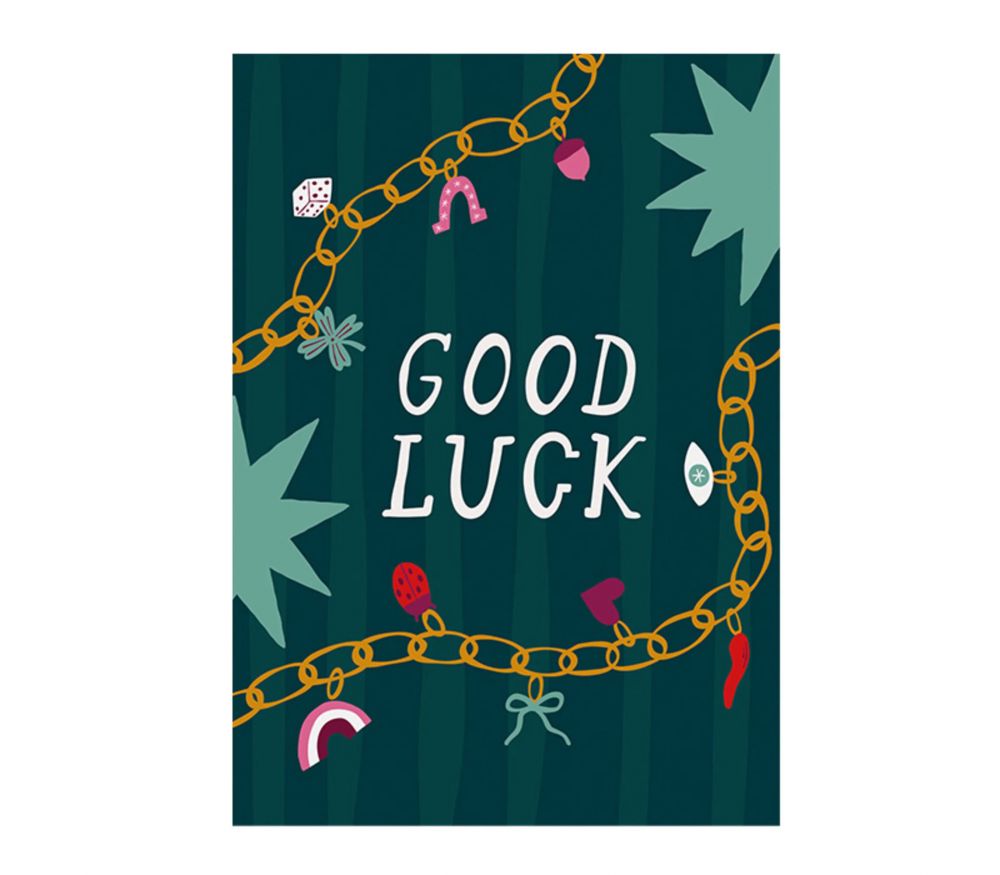 Een kaartje voor geluk/succes! Groene ondergrond met tekst Good luck! A6 kaart, All the luck in the world