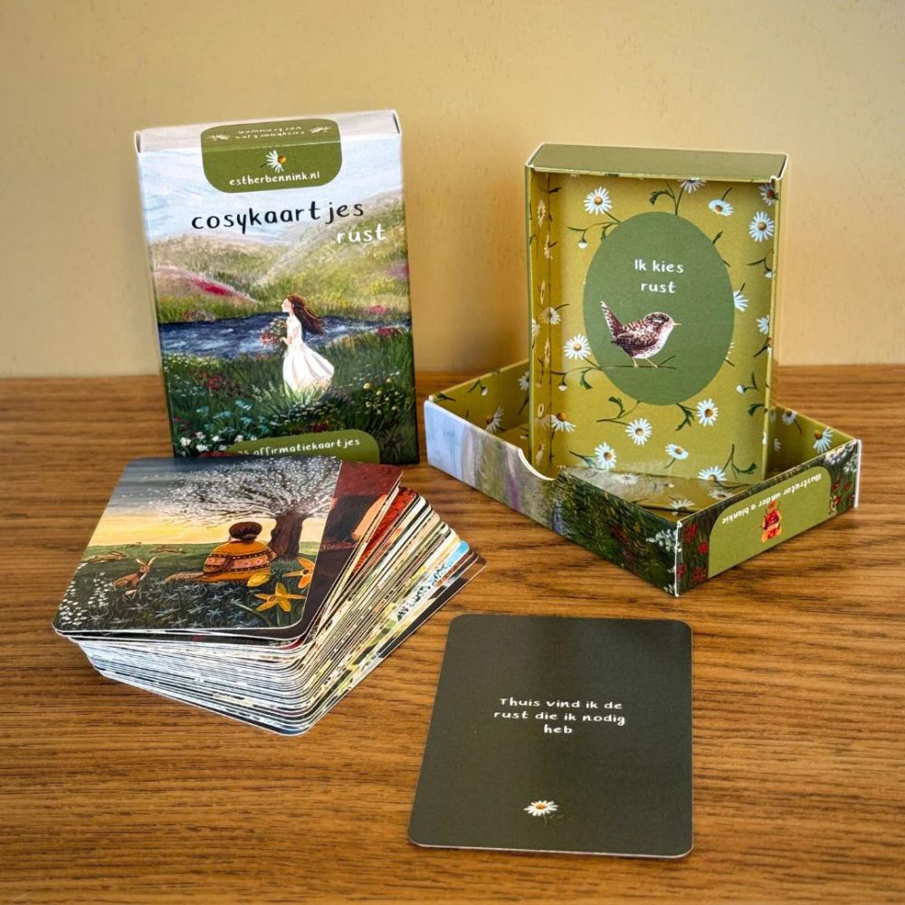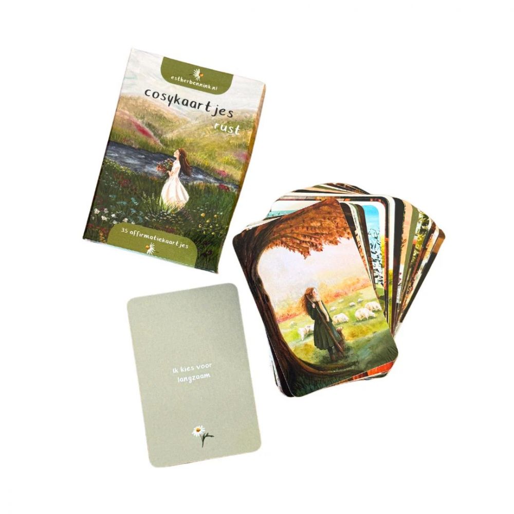 Een schattig doosje vol rust én cosiness! 35 prachtig geïllustreerde kleine inspiratiekaartjes met boodschappen voor een boost in vertrouwen. Handig formaat om in je tas te stoppen en bij je te dragen. Of om cadeau te geven! Esther Bennink.