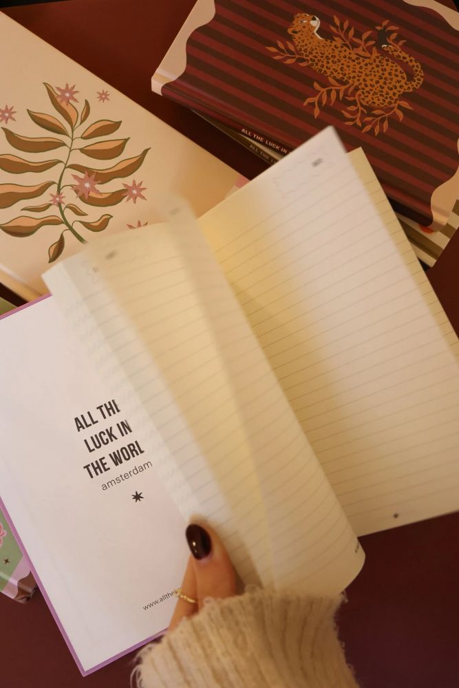 Jouw nieuwe favoriete notitieboekje! Laat je verrassen door deze kwalitatieve notitieboekjes. De levendige patronen en kleuren maken deze boekjes niet alleen functioneel, maar ook een echte eye catcher. Perfect als cadeautje of gewoon lekker voor jezelf. All the luck in the world.