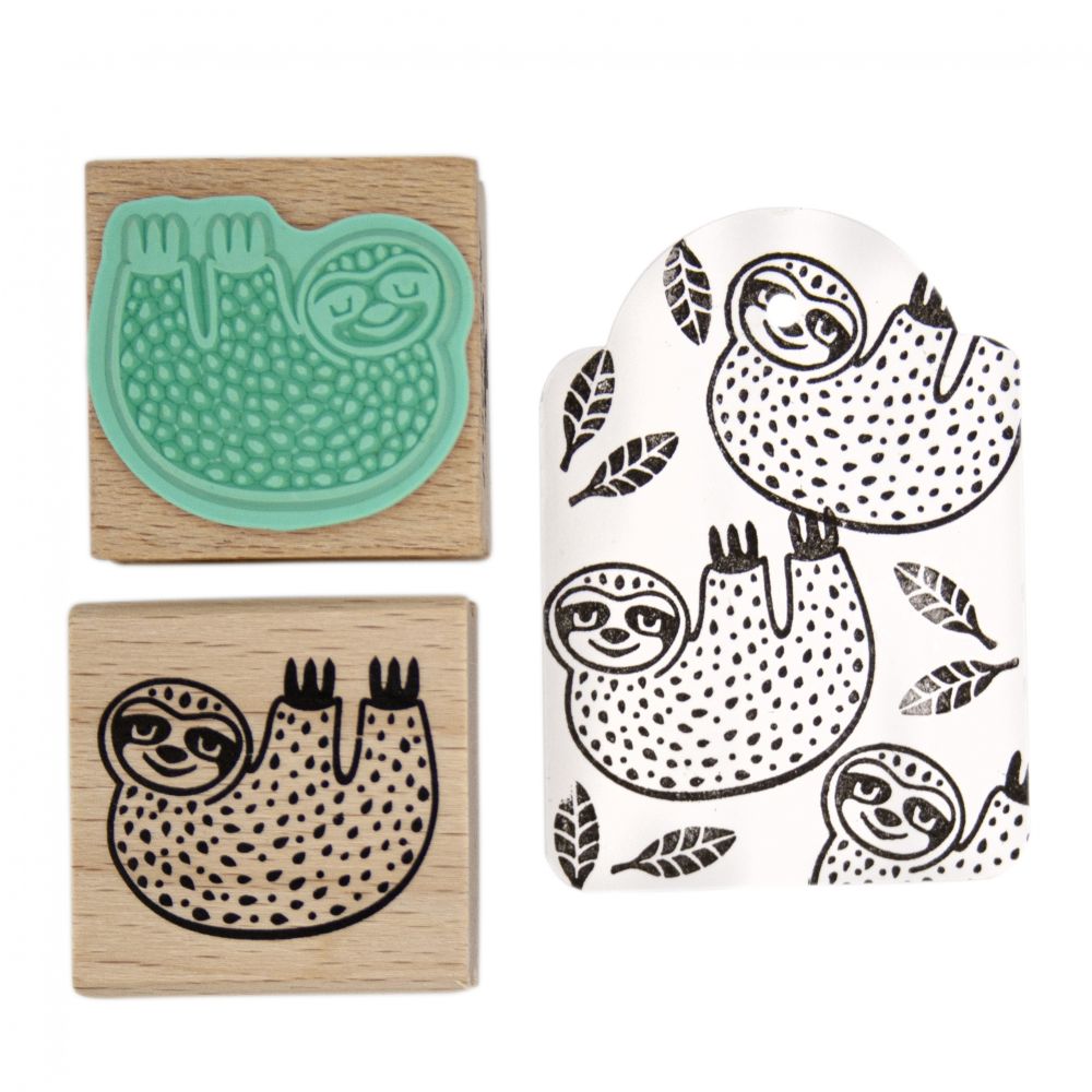 Enige stempel met luiaard. Hout met mint rubber. Miss Honeybird.